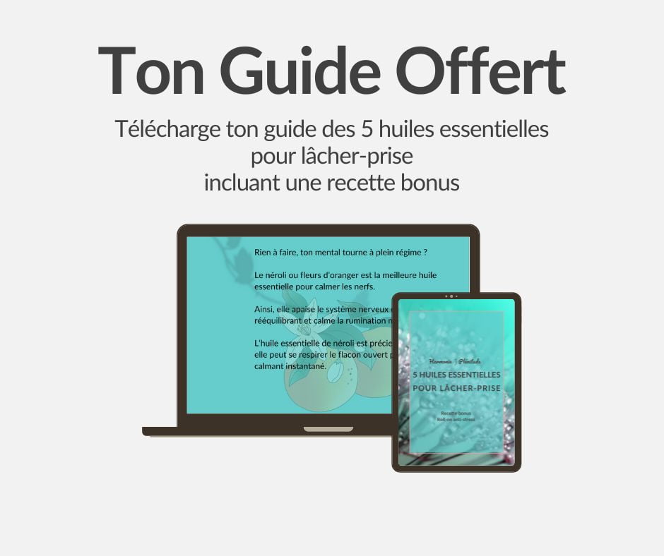 Et les huiles essentielles sont un remède naturel tout à fait indiqué pour soulager ton mental, et donc de lâcher prise, grâce à leurs propriétés relaxantes et apaisantes.